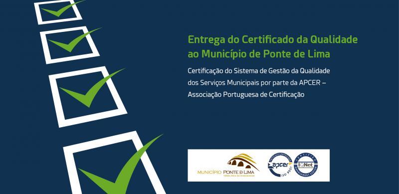 - Município de Ponte de Lima obtém Certificado da Qualidade nos Serviços Municipais | Entrega do Certificado de Conformidade – 9 de agosto – 11 horas