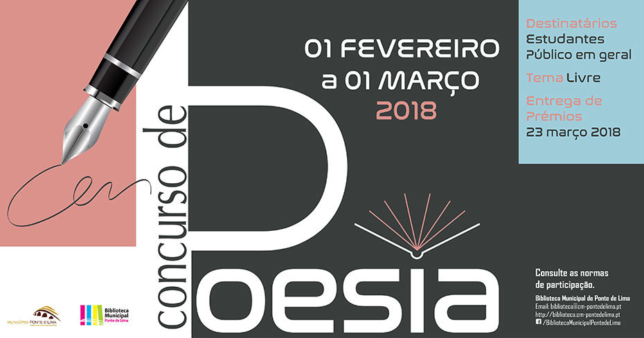 A Câmara Municipal de Ponte de Lima, através da Biblioteca Municipal, organiza o Concurso de Poesia que visa estimular a criatividade, valorizar a produção literária, fomentar hábitos de escrita e de leitura nos mais jovens, e premiar a produção de originais de poesia.