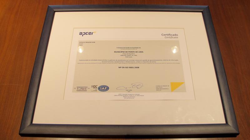 Esta certificação tem por âmbito as Atividades desenvolvidas no Gabinete de Atendimento ao Munícipe e Tesouraria e na Gestão de Aprovisionamentos, Sistemas de Informação, Recursos Humanos e Equipamentos e Infraestruturas, resultado da avaliação realizada pela APCER - Associação Portuguesa de Certificação, organismo certificador devidamente acreditado, reconhece que estes serviços do Município de Ponte de Lima cumprem com os requisitos da norma NP EN ISO 9001:2008 e que incorporam nas suas atividades importantes princípios de gestão, como a focalização no cidadão, liderança, envolvimento das pessoas, abordagem por processos e melhoria contínua.
