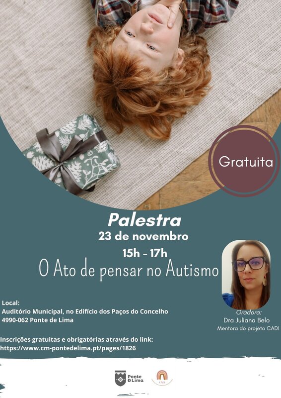 - Palestra "O ato de pensar no Autismo" | Ponte de Lima - Auditório Municipal | 23 de novembro – 15 horas