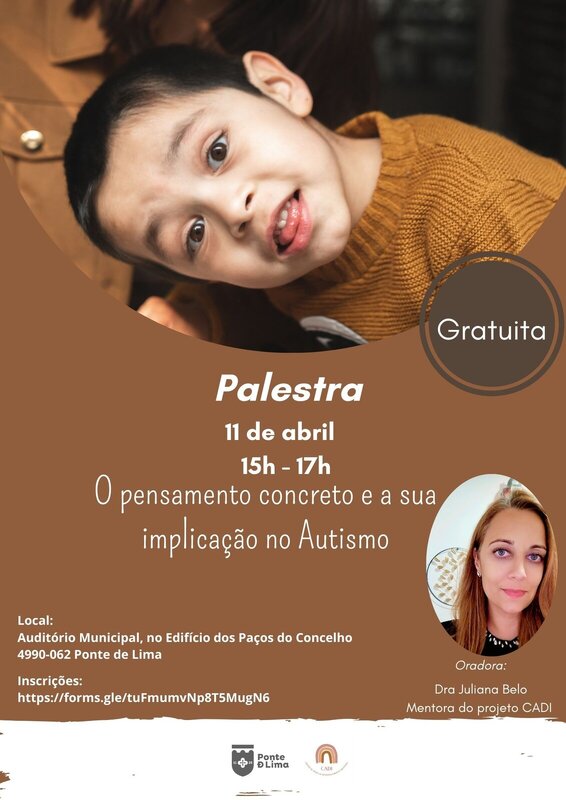Neste âmbito, o Município irá promover a palestra “O Pensamento Concreto e a sua Implicação no Autismo”, no próximo dia 11 de abril, às 15h00, no auditório municipal do Edifício dos Paços do Concelho, em Ponte de Lima.