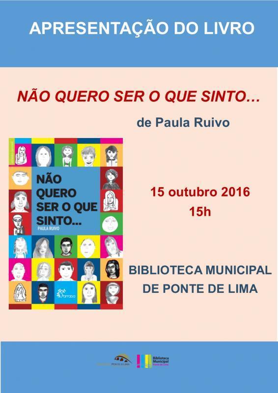 A escritora Paula Ruivo apresenta a sua última obra literária - "Não quero ser o que sinto..." - no próximo sábado, 15 de outubro, pelas 15h00, no Auditório da Biblioteca Municipal de Ponte de Lima. Habituada a um registo mais infantil em anteriores narrativas, a autora explora agora o universo juvenil abordando a complexidade do bullying em contexto escolar e fornecendo ferramentas de prevenção, de consciencialização comportamental e de reação concertada. Uma obra atual, de pertinência temática, que ajuda a identificar os sinais de alerta e a procurar a ajuda necessária para as vítimas de agressões físicas e/ou morais continuadas, geralmente incapazes de ripostar e de reagir por força de circunstâncias diversas.