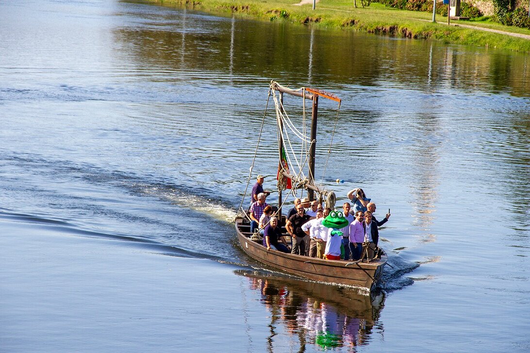 O barco Água Arriba fez a ligação entre as duas margens, consolidando simbolicamente este Abraço ao Lima, contando com a presença do Executivo Municipal, Diretores dos Agrupamentos de Escolas do Concelho, e da mascote da Área Protegida das Lagoas de Bertiandos e S. Pedro D´Arcos – O Pinchas, tão aguardado pelos mais pequenos.