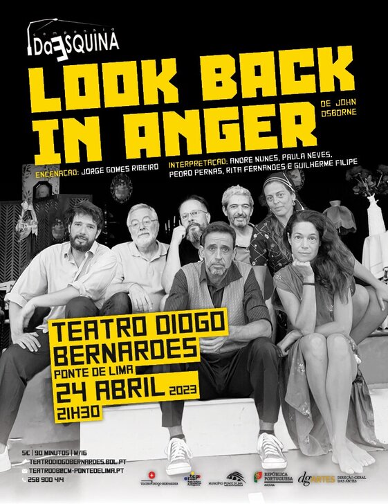 No dia 24 de abril (segunda-feira), pelas 21h30, realce para o espetáculo “Look Back in Anger”, de John Osborne, pela Companhia da Esquina – Associação Cultural, que se centra na personagem de Jimmy Porter, um jovem dos anos cinquenta, insatisfeito bem-falante, que vive com a sua mulher da classe alta, Alison, e o amigo de ambos, Cliff. Jimmy passa o seu tempo a condenar e criticar ferozmente o mundo e também a sua esposa, por assim dizer, tentando provocar uma reação na estoica Alison. Espetáculo com encenação de Jorge Gomes Ribeiro e interpretação de Paula Neves, André Nunes, Guilherme Filipe, Pedro Diogo e Rita Fernandes.