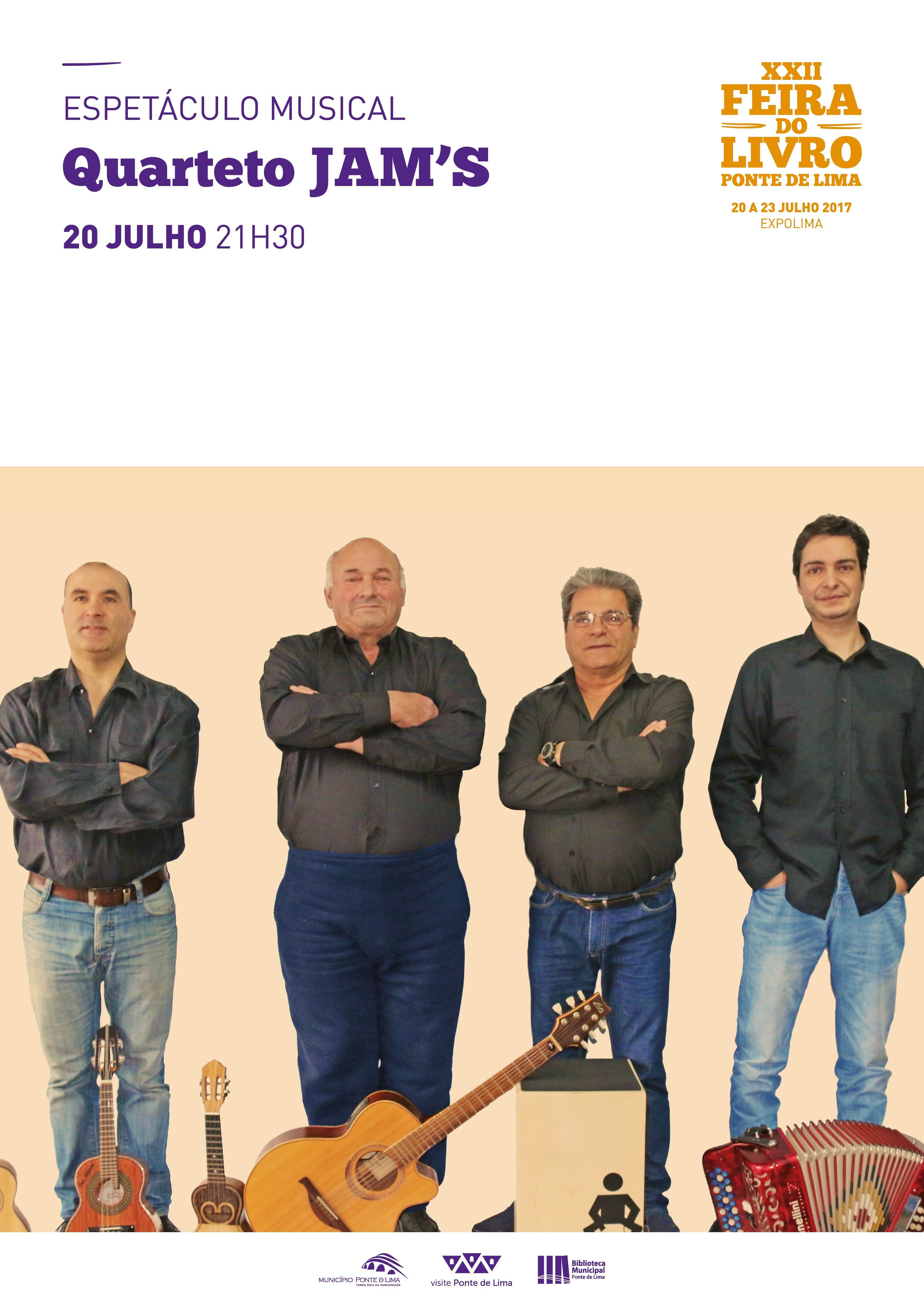 O Quarteto JAM’S – grupo de cariz popular e génese ponte-limense – é o protagonista do primeiro espetáculo musical da XXII Feira do Livro de Ponte de Lima, que decorrerá na próxima quinta-feira, 20 de julho, pelas 22h30.
