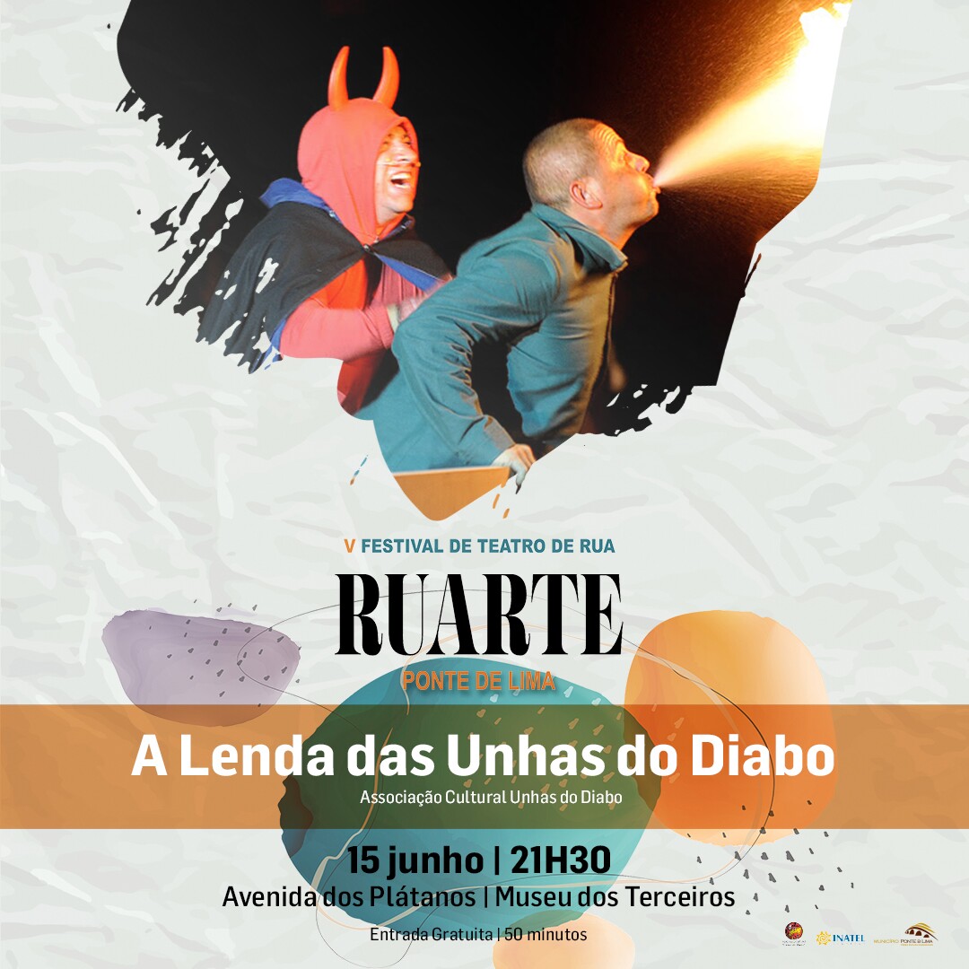 O V Festival de Teatro de Rua – RUARTE tem início amanhã dia 15 de junho com uma arruada pelo Grupo de Bombos “Unidos de Cepões”, a partir das 19h00, pelas ruas do centro histórico de Ponte de Lima. Segue-se o espetáculo de abertura “A Lenda das Unhas do Diabo”, pela Associação Cultural Unhas do Diabo, pelas 21h30, na Avenida dos Plátanos – Museu dos Terceiros com entrada livre e duração de 50 minutos.
