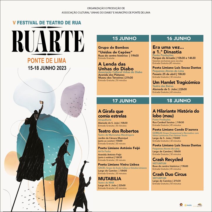 Confira ao pormenor a programação completa da Vª edição do RUARTE - Festival de Teatro de Rua de Ponte de Lima: consulte o site: www.cm-pontedelima.pt.