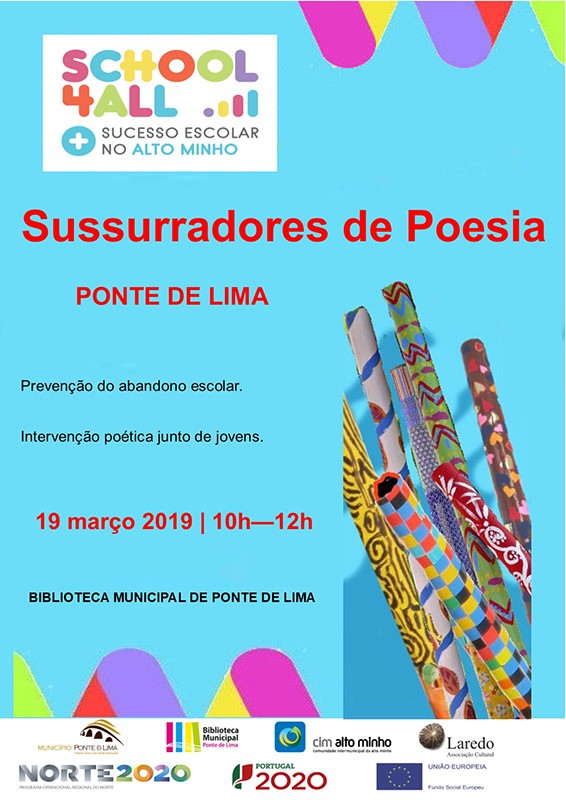Esta atividade vai decorrer no dia 19 de março de 2019, no centro histórico de Ponte de Lima, a partir das 10h00 e está integrada no projeto “Alto Minho a Ler : Uma Estratégia Para o Sucesso Escolar”, integrado no projeto “Scholl4All Alto Minho”, promovido pela CIM Alto Minho, no âmbito do PIICIE, visando apoiar o combate ao abandono escolar pela valorização da leitura, associada à escrita e à criação, numa perspetiva inclusiva que desenvolva competências entre os agentes educativos de modo a permitir mais e melhores projetos no futuro e permitindo rentabilizar recursos públicos comuns já existentes - bibliotecas, museus, escolas, profissionais, cultura da comunidade valorizando a leitura e as literacias.