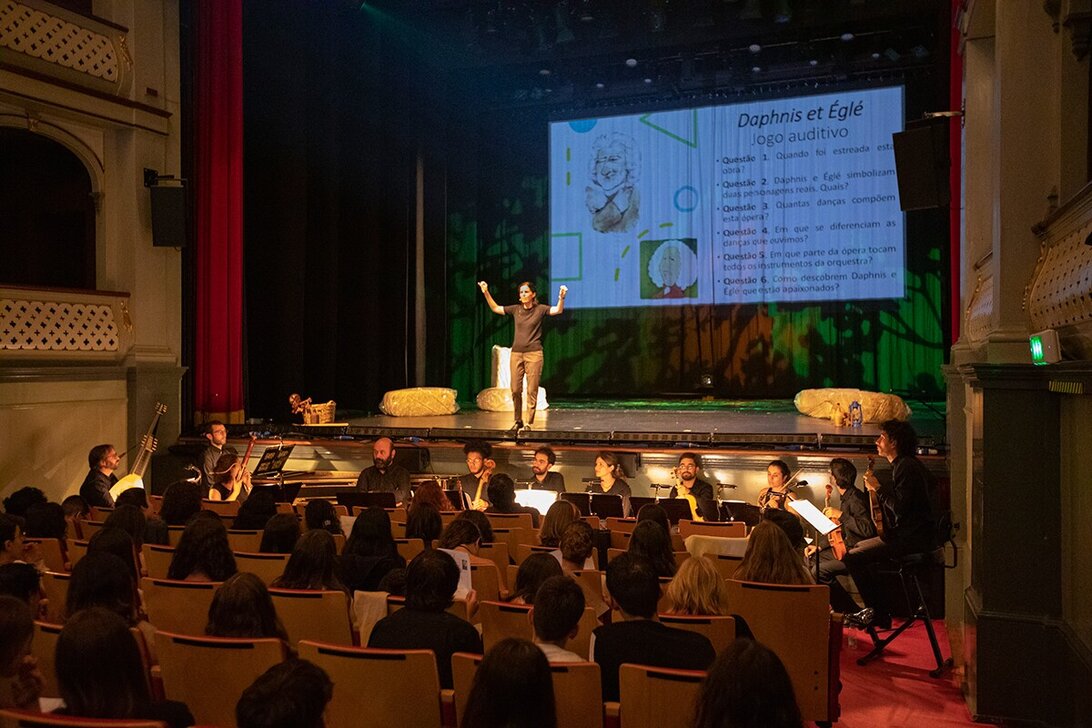 Na sexta feira foi apresentado uma sessão exclusiva para público escolar, mais de 200 alunos e professores da Escola Secundária de Ponte de Lima assistiram à estreia absoluta desta coprodução, durante a qual foi explicada e comentada esta opera barroca francesa pelos Aurum et Purpura. A apresentação dirigida à comunidade escolar, para além de divulgar esta estreia nacional em Ponte de Lima, teve como objetivo educar e formar novos públicos.