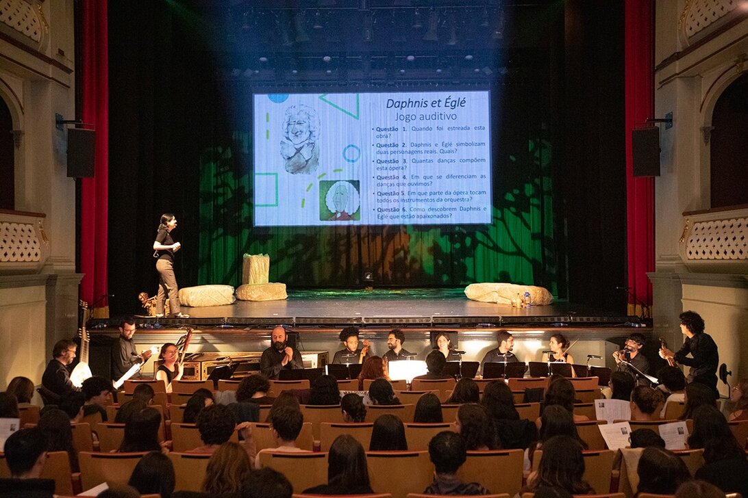 Com lotação esgotada, o Teatro Diogo Bernardes apresentou no sábado, 14 de outubro para o público em geral um espetáculo de ópera, arte com admiradores em todo o mundo, a coprodução "Daphnis et Églé": ópera barroca, escrita em 1753 por Jean-Philippe Rameau.