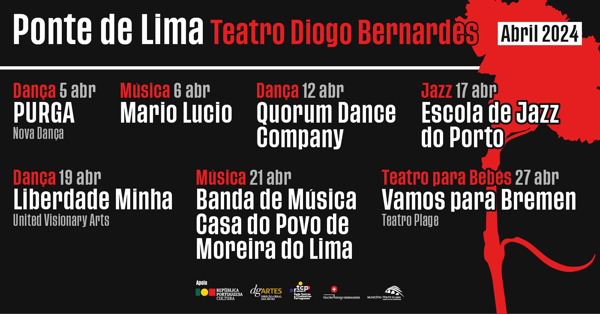 O Município de Ponte de Lima, através do Teatro Diogo Bernardes apresentam, no mês de abril, uma programação em que as comemorações dos 50 anos do 25 de abril de 1974 e as comemorações do Dia Mundial da Dança assumem especial destaque.