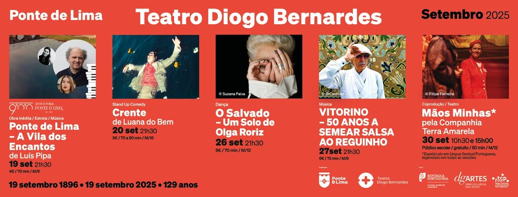O Município de Ponte de Lima e o Teatro Diogo Bernardes apresentam, no mês de setembro, uma programação dedicada às comemorações do 129.º aniversário do Teatro Diogo Bernardes, com um conjunto de espetáculos dos mais variados segmentos, desde a música, o teatro, a dança e o stand up comedy, que reflete a continuação da aposta numa oferta de qualidade, diversificada e contemporânea, representativa das diversas artes de palco.