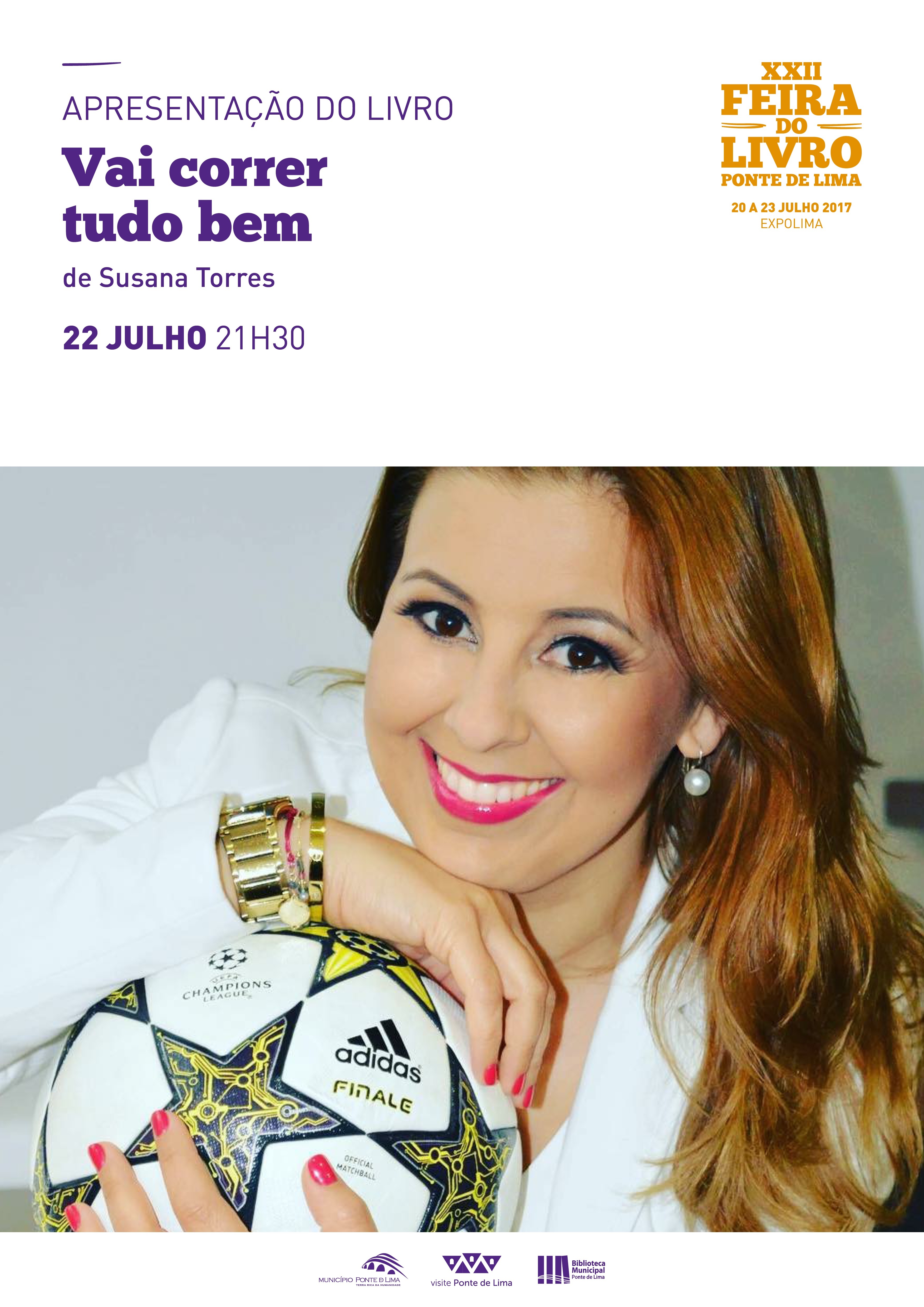 A obra “Vai correr tudo bem”, da autoria de Susana Torres, vai ser apresentada no próximo sábado, 22 de julho, pelas 21h30, no recinto da Expolima. Trata-se de um livro que incide sobre a vida do futebolista Eder – atleta responsável pelo golo da vitória da Seleção Nacional na final do Campeonato Europeu de 2016 -, mas cuja mensagem de confiança, fé, perseverança e motivação se estende a todos os cidadãos, independentemente da atividade que exercem ou das escolhas que fazem.