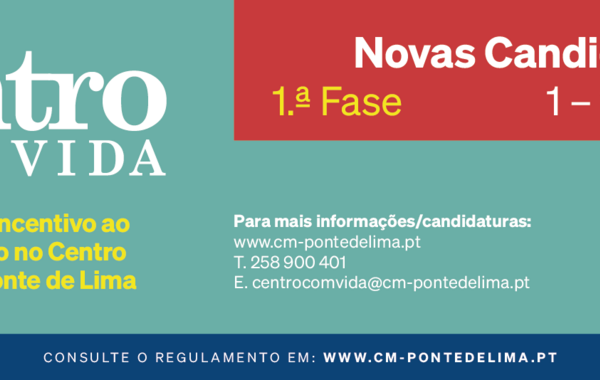 Novas Candidaturas: Abertura da 1.ª fase de candidaturas ao programa Centro Com Vida