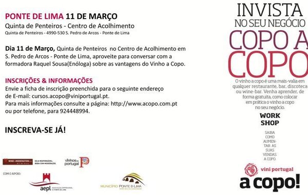 Workshop Vinho 'A Copo!' - dia 11 de março em Ponte de Lima