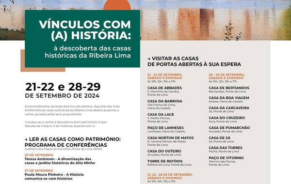 11 Setembro 2024Visitas guiadas a casas históricas da Ribeira Lima nos últimos fins de ...