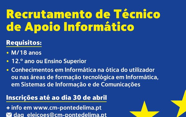 Recrutamento de Técnico de Apoio Informático para a realização do Ato Eleitoral | Eleições Europeias de 6 a 9 de junho de 2024