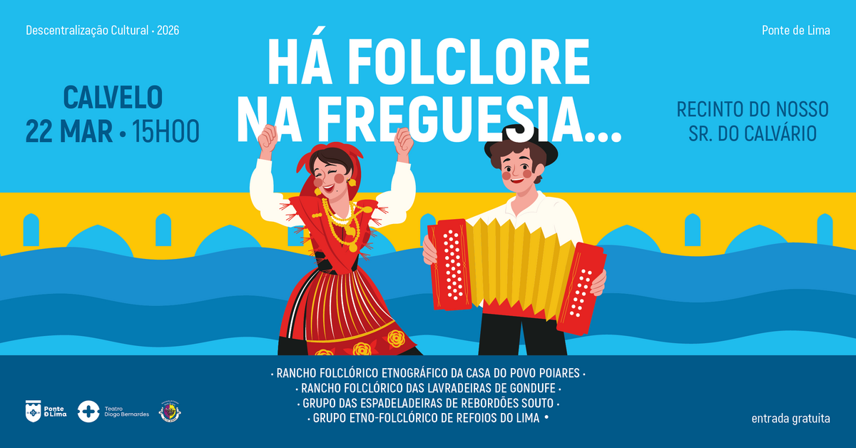 A 22 de março de 2026, às 15h00, com entradas gratuitas, Há Folclore na Freguesia... de Calvelo, com a participação dos seguintes grupos: