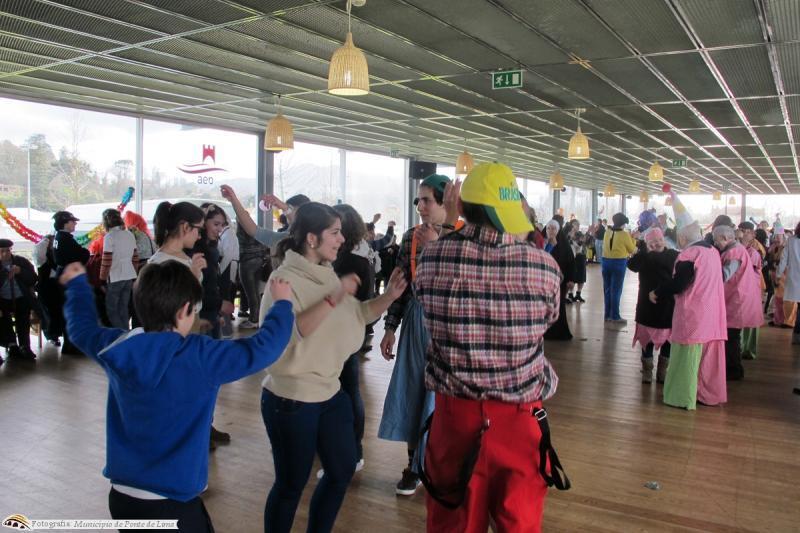 Os técnicos de cada instituição auxiliados pelos alunos do curso de animação sócio profissional da Escola Secundária de Ponte de Lima ajudaram na animação do baile, onde não faltaram as máscaras tradicionais do Entrudo.