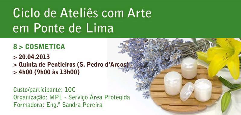 "Cosmética" é o tema da próxima sessão do Ciclo de Ateliês com Arte, agendada para o dia 20 de abril, na Quinta de Pentieiros, entre as 9h e as 13 horas.