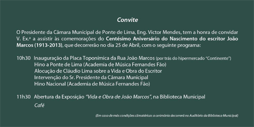 - Centenário de nascimento do poeta João Marcos