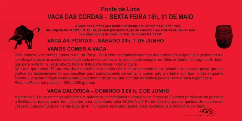 - Vaca das Cordas em Ponte de Lima dia 31 de maio às 18 horas