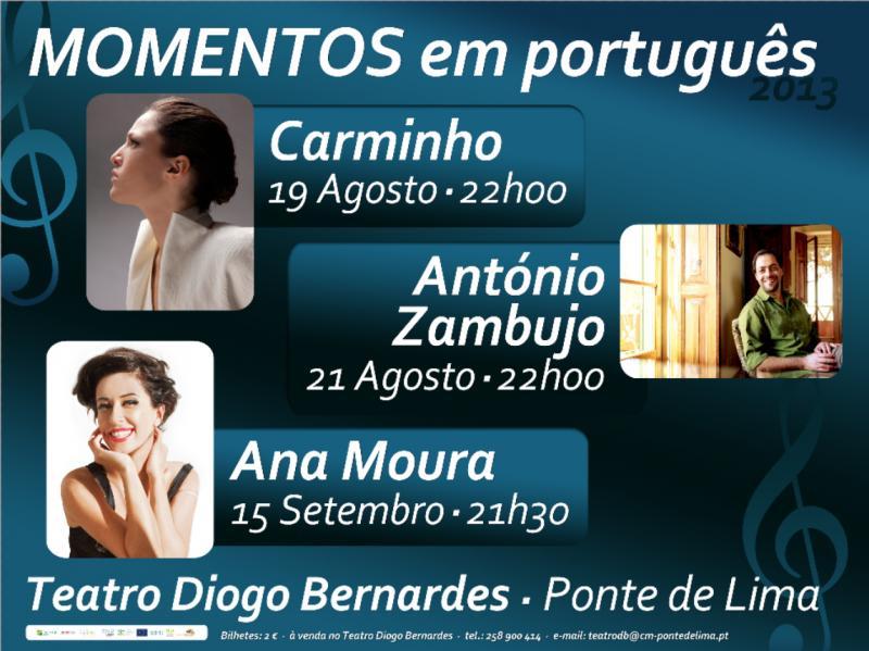 Devido a motivos imprevistos os espetáculos de António Zambujo e de Carminho, anunciados para 19 de agosto e 21 de agosto, às 22h00 no Teatro Diogo Bernardes, vão realizar-se com troca de datas. Assim temos: