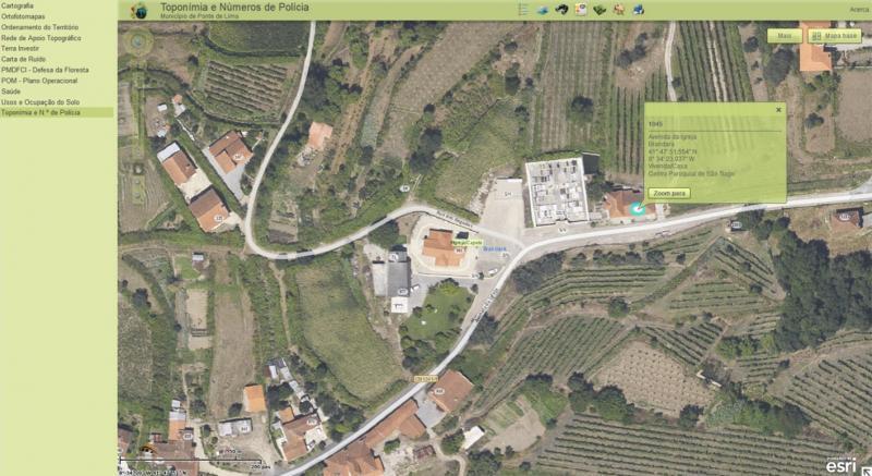 Entre a grande diversidade de dados que constam da base de dados geográfica, foram criados dois tipos de acesso. O Geoportal de Toponímia e Números de Polícia para a internet (público em geral) disponibilizado no repositório de geoportais municipais, em http://sig.cm-pontedelima.pt e o Geoportal para a Intranet (para os serviços municipais).