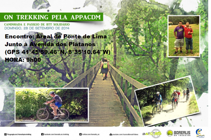 Realiza-se no próximo domingo, dia 28 de setembro uma caminhada e um passeio de BTT, denominada On Trekking pela APPACDM de Ponte de Lima – Centro de Reabilitação de Ponte de Lima da Associação Portuguesa de País e Amigos do cidadão com Deficiência Mental.