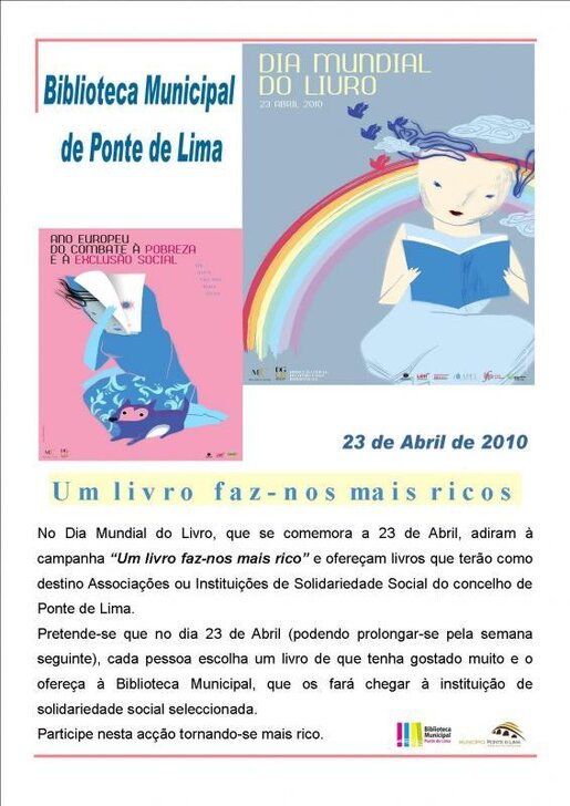 Assim, no dia 23 de abril, "Dia Mundial do Livro", cada pessoa pode escolher um livro que tenha gostado muito e doá-lo à Biblioteca Municipal de Ponte de Lima. Por sua vez esta procederá à entrega dos mesmos à instituição de solidariedade social selecionada.
