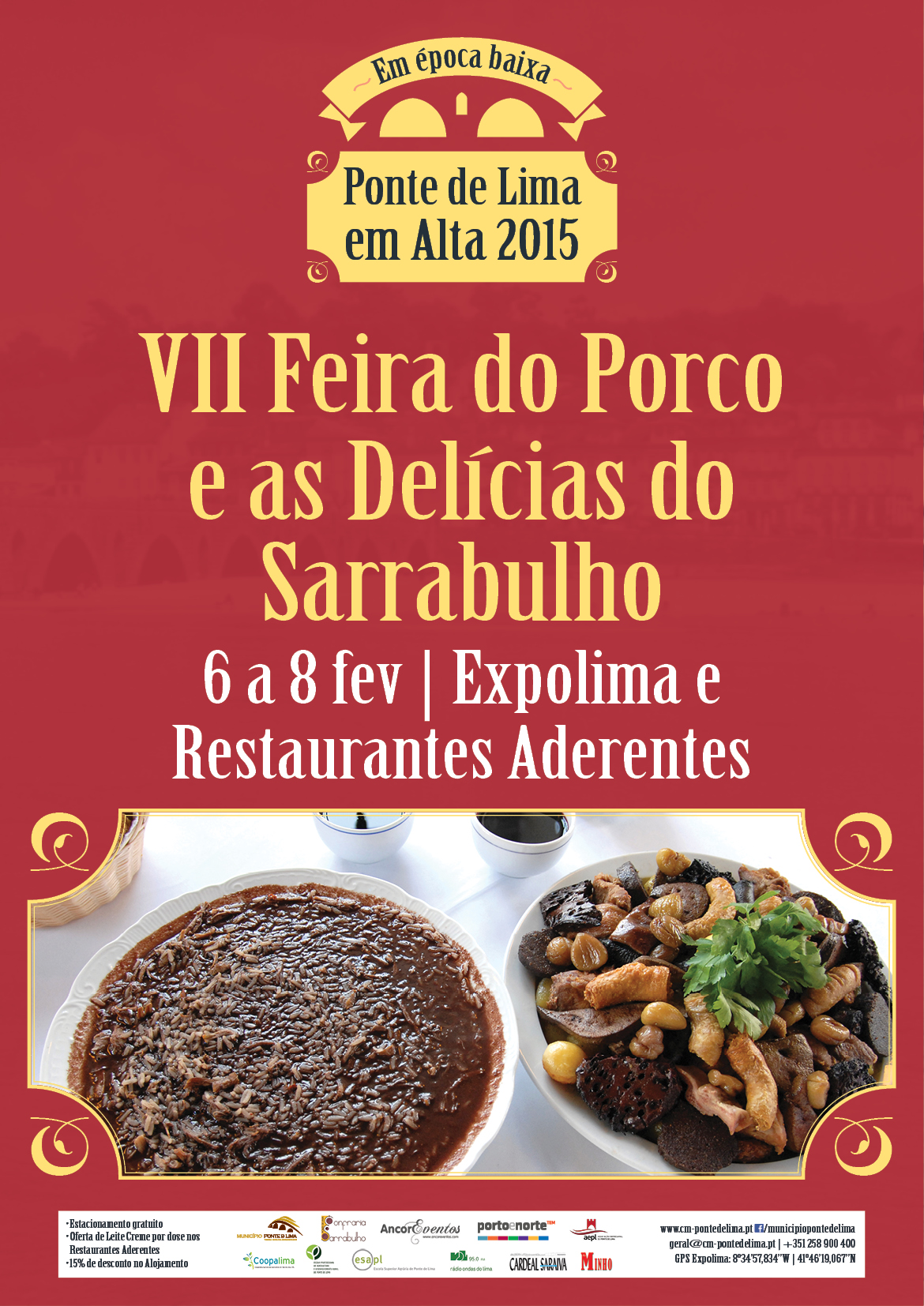 A “Feira do Porco e as Delícias do Sarrabulho” promove o Arroz de Sarrabulho à moda de Ponte de Lima, prato típico limiano, mostrando também algumas iguarias como a beloura, a farinhota, a chouriça de verde, o buxo, e outras delícias de comer e chorar por mais. A sobremesa tradicional é o leite-creme e o companheiro ideal é o vinhão, tinto especial da nossa região.