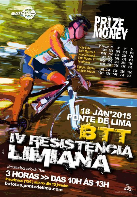 Ponte de Lima acolhe no próximo domingo, dia 18 de janeiro mais uma prova de BTT, trata-se da IV Resistência Limiana, promovida pelo Batotas - Clube de Desportos Radicais de Ponte de Lima, com o apoio do Município de Ponte de Lima e da Associação de Ciclismo do Minho.