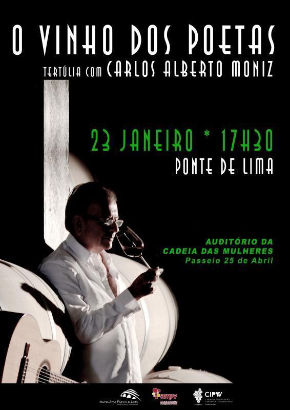 Carlos Alberto Moniz na tertúlia "O Vinho dos Poetas" apresenta "canções frutadas, canções de regiões demarcadas, aromas, elegância, estrutura, complexidade e a definição de um disco dedicado aos Vinhos".