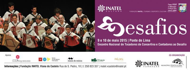 A iniciativa organizada em parceria entre o Inatel e o Município de Ponte de Lima, já recebeu cerca de 560 participantes. DESAFIOS - Encontro Nacional de Tocadores de Concertina e Cantadores ao Desafio propõe, na sua edição de 2015, um programa diversificado ao longo de todo o fim de semana, com uma componente expositiva e de conversa aberta sobre os principais agentes e protagonistas desta manifestação cultural. Com o objetivo de reabilitar esta prática e de recentrar o papel da concertina e dos cantares ao desafio nas manifestações populares, a INATEL promoveu em 1996, no Castelo de Santiago da Barra (Viana do Castelo), um primeiro convívio que contou com a participação de cerca 40 tocadores e cantadores.