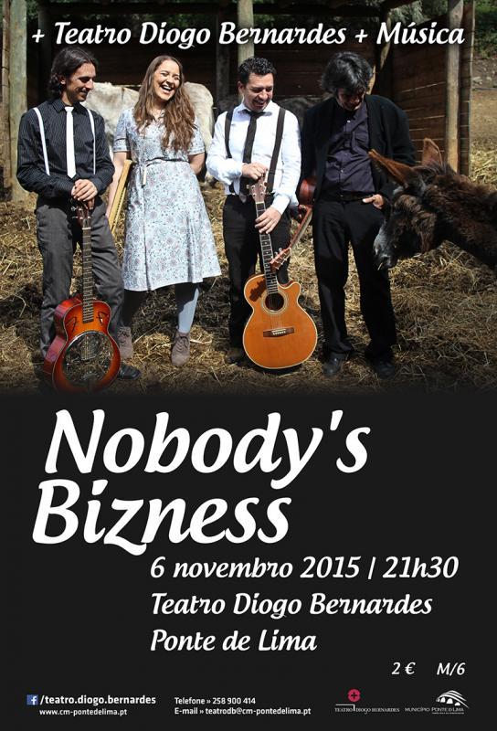 O mês de Novembro no Teatro Diogo Bernardes, em Ponte de Lima, abre com o concerto da banda Nobody's Bizness (blues, folk, jazz, country) que traz como convidado especial o baterista Pedro Oliveira, músico de projectos bem conhecidos como peixe : avião, Dear Telephone e OZO.
