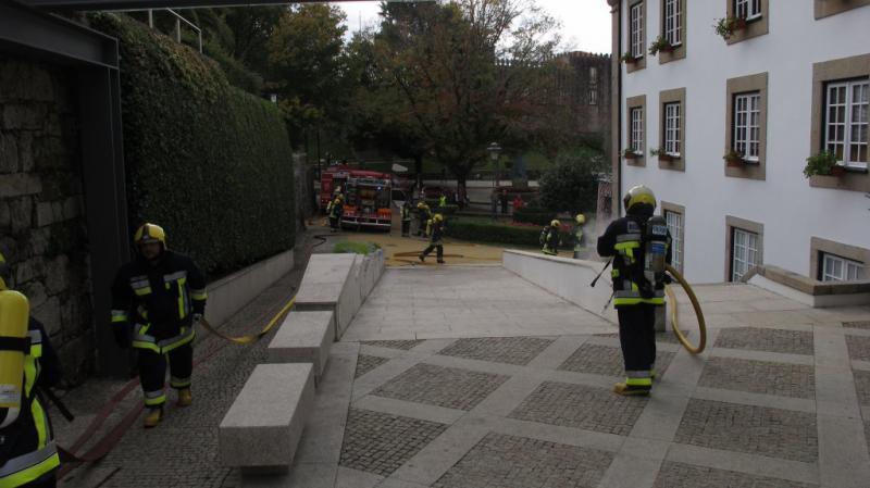 O edifício dos Paços do Concelho e o edifício Casa da Porta de Braga foram o alvo do exercício, no qual foram testados dois cenários de emergência, nomeadamente um incêndio num edifício, com propagação ao outro, e uma pessoa em paragem cardiorrespiratória.