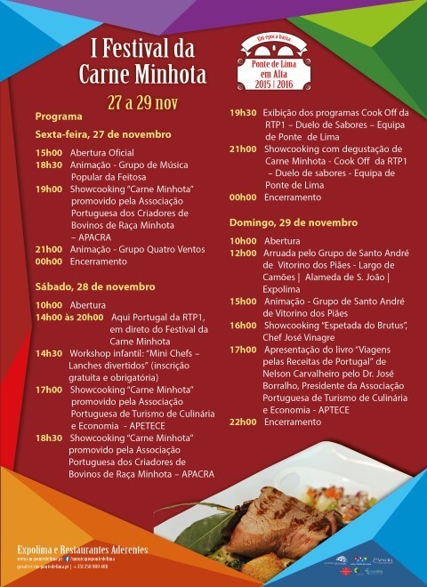 O programa desta 1ª edição do Festival da Carne Minhota conta com um conjunto de atividades, relacionadas com a temática, nomeadamente os Showcookings, promovidos pela APETECE - Associação Portuguesa de Turismo de Culinária e Economia e pela APACRA - Associação Portuguesa de Criadores de Bovinos de Raça Minhota; bem como a exibição da equipa limiana, participante no programa da RTP 1 - Cook Off - Duelo de Sabores, vice-campeã nacional desta competição, que percorreu o país, promovendo a gastronomia portuguesa.