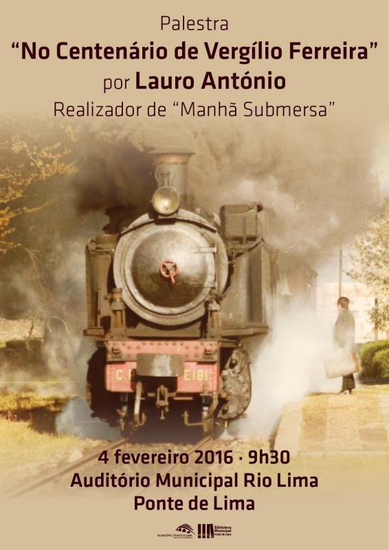O Município de Ponte de Lima promove a palestra intitulada No centenário de Vergílio Ferreira, com o cineasta e crítico de cinema, Lauro António, no próximo dia 04 de fevereiro, pelas 09h30, no Auditório Rio Lima.
