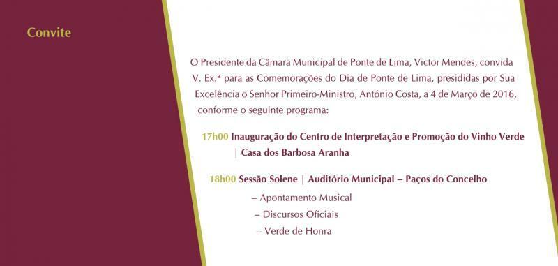 - Primeiro-Ministro Preside às Comemorações do Dia de Ponte de Lima | Inauguração do Centro de Interpretação e Promoção do Vinho Verde 4 de Março - 17 horas