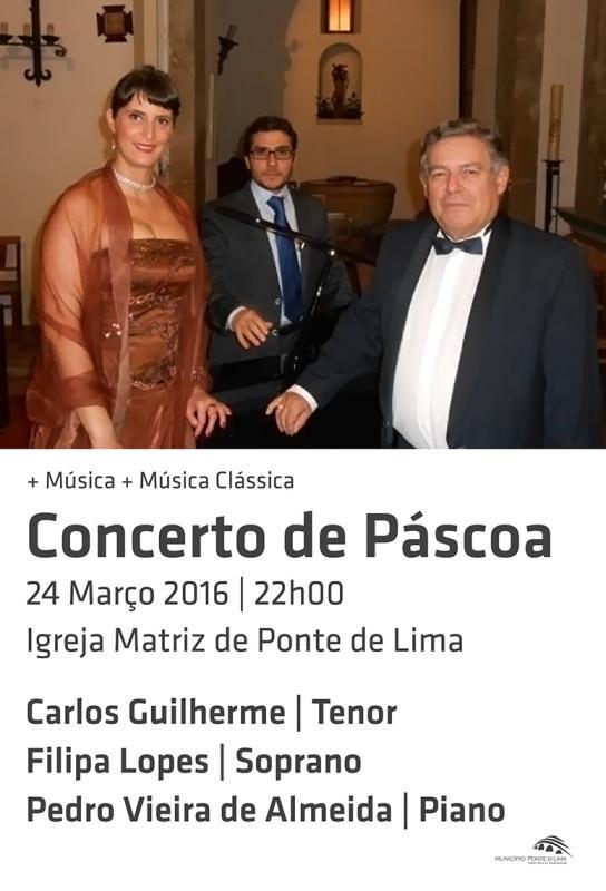 - Concerto de Páscoa | Carlos Guilherme (tenor), Filipa Lopes (soprano) e Pedro Vieira de Almeida (piano) | 24 de Março – 22h00 – Igreja Matriz – Ponte de Lima