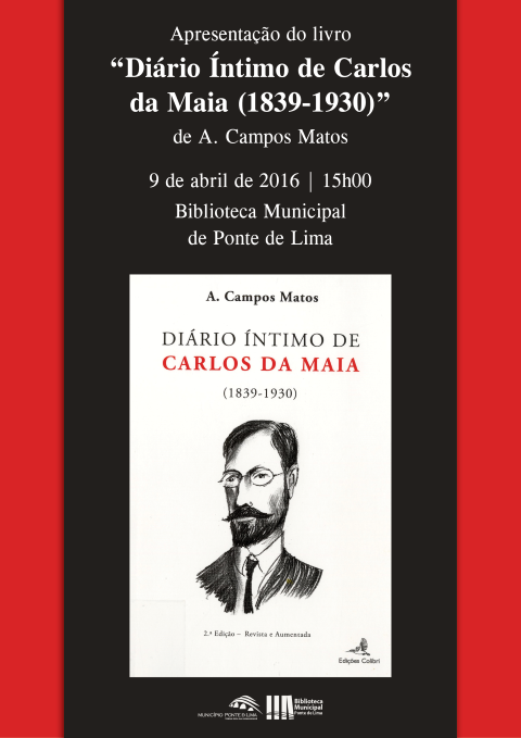 O Município de Ponte de Lima vai promover a apresentação da obra Diário Íntimo de Carlos da Maia (1839-1930), da autoria de A. Campos Matos, no próximo sábado, dia 9 de abril, às 15h00, no auditório da Biblioteca Municipal.