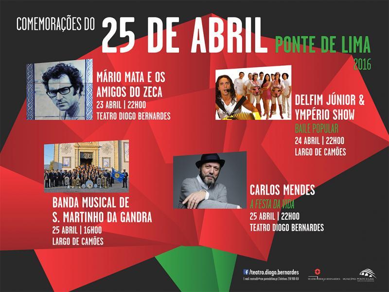 - Comemorações do 25 de abril – Ponte de Lima 23, 24 e 25 de abril no Teatro Diogo Bernardes e no Largo de Camões