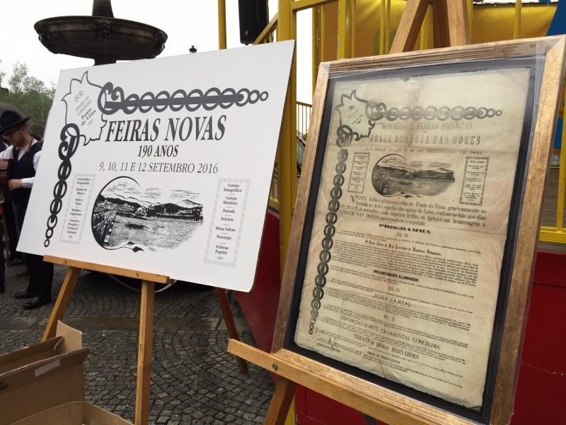 O cartaz a preto e branco é uma réplica do primeiro documento escrito que se conhece a anunciar as Feiras Novas. Anterior a esta data, 1896, não há qualquer registo impresso sobre as Festas, justificou a Presidente da Associação Concelhia das Feiras Novas, Ana Machado.
