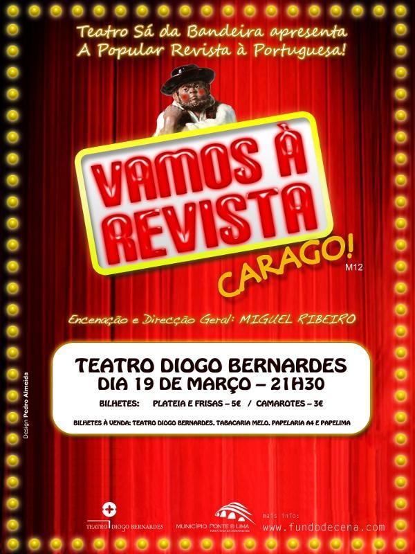 O Teatro Diogo Bernardes apresenta no dia 19 de março, às 21h30 a popular Revista à Portuguesa "Vamos à Revista Carago", numa produção do Teatro Sá da Bandeira. O elenco é composto por 15 elementos, e do mesmo fazem parte nomes como: Cláudia...
