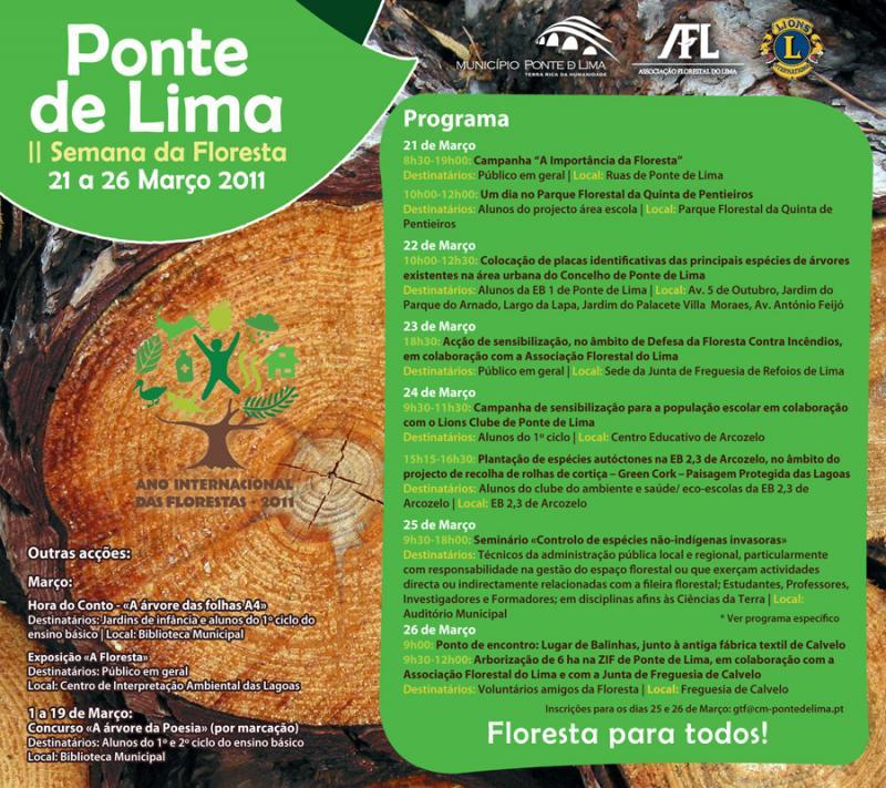 "Floresta para todos" é o tema da , que o Município de Ponte de Lima, vai promover de 21 a 26 de março, numa ação alusiva ao Ano Internacional das Florestas.