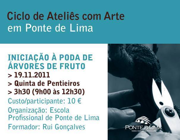 O projeto do Município de Ponte de Lima, Ciclo de Ateliês com Arte, dinamiza mais uma sessão no próximo dia 19 de novembro, subordinada ao tema "Iniciação à Poda de Árvores de Fruto". Aplicar as principais técnicas de poda em árvores de fruto...