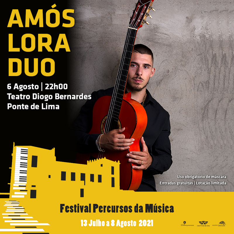 Dada a situação de incerteza das condições climáticas que podem impedir a realização do espetáculo ao ar livre e a subsequente presença de público na Expolima, a organização do “Festival Percursos da Música 2021”, decidiu transferir para o Teatro Diogo Bernardes a apresentação do espetáculo de dia 6 de agosto, Amós Lora Duo, mantendo-se às 22 horas.
