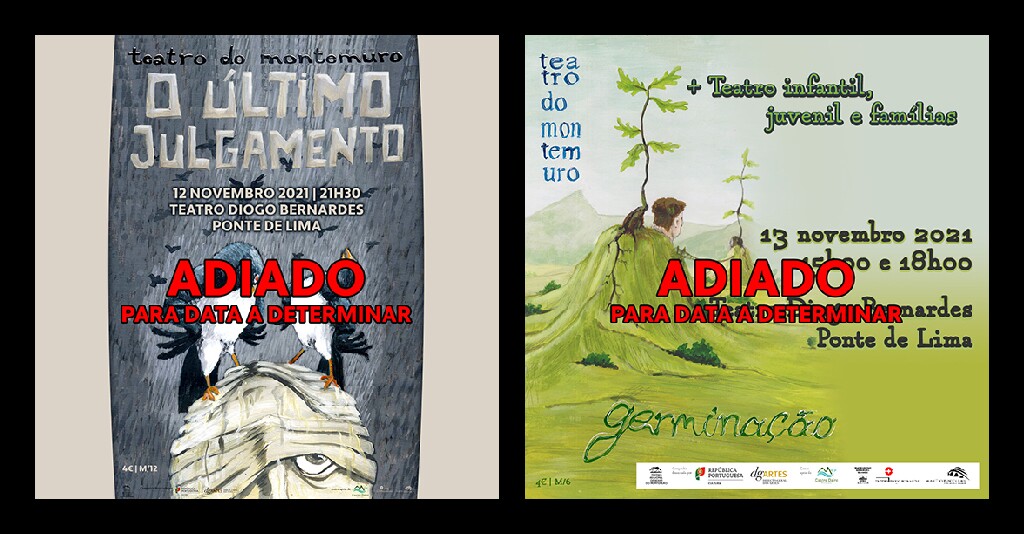 A programação cultural de um Teatro está, por vezes, sujeita a imponderáveis de diversa natureza. O Teatro Diogo Bernardes não é exceção. Lamentamos informar que, por motivo de doença grave de um elemento da equipa da Companhia de Teatro de Montemuro, os espetáculos “O Último Julgamento” e o Teatro infantil, juvenil e para famílias “Germinação”, que iriam ocorrer no Teatro Diogo Bernardes nos próximos dias 12 e 13 de novembro, respetivamente, não se irão realizar.