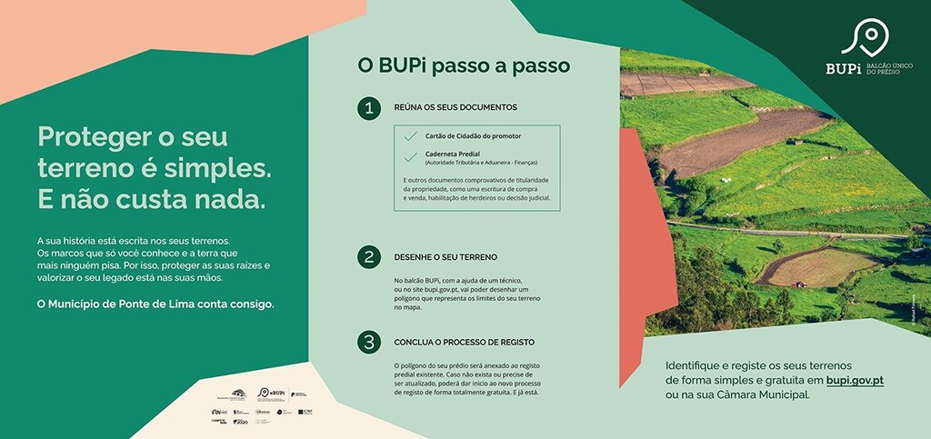 O Balcão Único do Prédio, também conhecido por BUPi, entrou em funcionamento no concelho de Ponte de Lima no dia 13 de setembro, no âmbito da expansão da política de cadastro predial simplificado e tem como objetivo possibilitar aos cidadãos identificarem e registarem, gratuitamente e de forma voluntária, terrenos rústicos e mistos de que são proprietários.