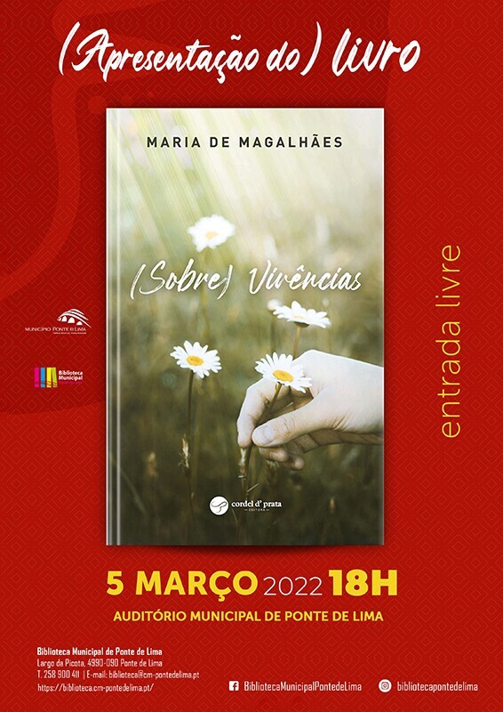 O Município de Ponte de Lima vai acolher o lançamento do livro "(Sobre) Vivências", de Maria de Magalhães, no dia 05 de março, pelas 18h00, no Auditório Municipal de Ponte de Lima.